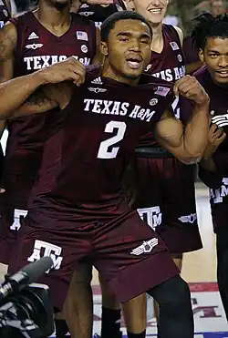 As a freshman, Starks made 15 starts and averaged 9.9 points and 2.3 assists per game.[1] He helped lead Texas A&M to the Sweet 16 of the NCAA Tournament and scored 21 points in an upset of North Carolina in the second round. Starks earned SEC All-Freshman Team honors.[3] He made a buzzer-beating three-pointer on January 12, 2019, to propel the Aggies to an 81–80 win over Alabama.[4] On February 26, Starks sustained a right shoulder injury in a loss against LSU, which required hospitalization and forced him to miss the rest of the season.[5] He averaged 12.3 points, 2.2 rebounds, and 3.5 assists per game as a sophomore.[6] Starks missed the first two games of his junior season with an ankle injury he sustained during an exhibition game. On November 14, 2019, he was suspended indefinitely due to being arrested for possession of two ounces or less of marijuana.[7]