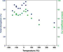 First steel based on plasticity induced by mechanical twinning was found in 1998 which had strength of 800 MPa with a total elongation of above 85%.[2] These values vary with deformation temperature, strain rate and chemical composition.[3][4]