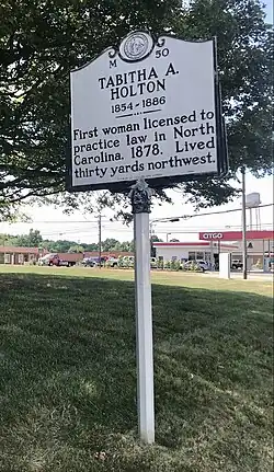 Tabitha Ann Holton (c. 1854 – June 14, 1886)[1][2] was the first woman to be licensed as a lawyer in North Carolina and in the Southern United States, in 1878.