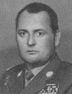 He was born in the village of Pacyn as the son of Szymon and Józefa.[1] During the Second World War he fought in the ranks of the People's Guard and then the People's Army. From 1945 he served in the Citizens' Militia. He took part in battles with National Armed Forces.[2] In the years 1951-1953 he was deputy commander and from 1953 to 1954 provincial commander of the Citizens' Militia in Warsaw. In the years 1954-1956 he was provincial commander of the Militia in Poznań. After 1956 he served as deputy head of the Main Directorate of Information of the Polish Army (1956–1957), and then deputy head of the Internal Military Service (1957–1961). In the following years he was deputy head of the Operational Directorate of the General Staff of the Polish Army (1961–1963). In 1963 he became commander of the Internal Troops subordinate to the Ministry of Internal Affairs (Border Protection Forces and Internal Security Corps). He held this position until 1965, and in the meantime he graduated from the Academy of the General Staff of the Polish Army. In 1963 he was promoted to the rank of brigadier general and the nomination was presented to him in the Belweder Palace by the chairman of the State Council of the Polish People's Republic Aleksander Zawadzki.