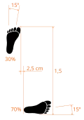 In this stance, one foot is in front of the other, with the back foot pointed 90 degrees perpendicular, and the front foot pointed straight. The majority of the body weight is placed on the back leg.