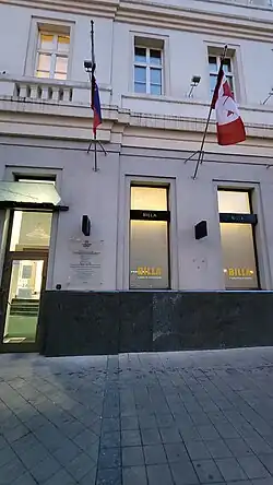 The Taipei Representative Office, Bratislava (Chinese: 駐斯洛伐克臺北代表處; pinyin: Zhù Sīluòfkè Táiběi dài biǎo chǔ; Slovak: Taipejská reprezentačná kancelária, Bratislava) represents the interests of Taiwan in the Slovakia in the absence of formal diplomatic relations, functioning as a de facto embassy.[2] Its counterpart is the Slovak Economic and Cultural Office in Taipei, which was established in September 2003.[3]