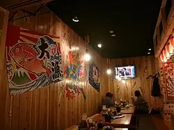 Store with Tairyō-bata (大漁旗, big catch flag) in Tokyo.