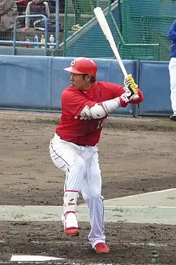 ![]() Iwamoto with the Hiroshima Toyo Carp | |