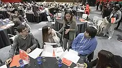 In 2013, the Foral Government of Biscay created the Talentia Network, as a meeting and work point for young students and future professionals.[6][7] The objective of this project was to "enhance the qualities of talented young people from the territory and, with them, Biscay also grows".[2] In 2013, the network had 500 members, young students who had taken part in the four editions of the Talentia Programme" and "Talent pro Bizkaia".[2] The first meeting was held in the auditorium of the Bilbao Exhibition Centre (BEC), in which more than a hundred members of the network came to the BEC auditorium to map, debate and imagine the present and future of Biscay.[2] The head of government (General Deputy) José Luis Bilbao and the Deputy for Economic Promotion Imanol Pradales participated. As declared by head of government José Luis Bilbao: "We want to take into account the talented professionals to build the future of all Biscayans".[2]
