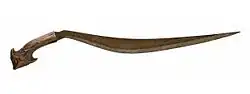 The talibong (also spelled talibon, taribong, or talebong), is a type of single-edged sword or knife, traditionally used by the Visayans of the Philippines, particularly in the islands of the Eastern Visayas and Central Visayas.[1][2] Talibong are also known as garab (also a term for native Filipino sickles), pira (a name shared with the Yakan pirah), or piru.[1]
