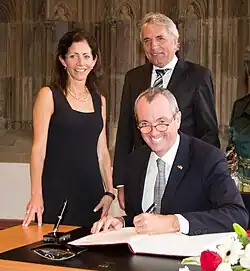 Murphy was active in her husband's 2017 campaign for Governor of New Jersey. Phil called her his de facto finance chair."[3] Murphy chaired their "issue advocacy" committee, New Start New Jersey and Phil spent $20 million on his campaign. She also participated in campaign events with and without her husband.[3][32] Phil Murphy was elected governor on November 7, 2017,[33] and sworn into office on January 16, 2018.[34]