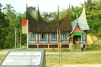 2. ^ The word gala in his title, "gala Datuak Sutan Malaka" implied that he was a pangulu andiko, or formal head of a sabuah parui (a community of descendants of a maternal ancestor connected with a particular maternal house, an important component of the Minangkabau social structure).[2]