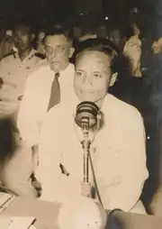 In December 1926, Tan Malaka went to Bangkok, where he studied the defeat of PKI. He, along with Djamaludin Tamin and Subakat, established the Partai Republik Indonesia ("Republic of Indonesia Party") in early June 1927, distancing himself from the Comintern as well as, in the new party's manifesto, criticizing the PKI. While the party did have a small membership inside the country, it never grew to be a large organization; however, with the PKI gone underground, it was the only organization in the late 1920s which was publicly calling for immediate independence for Indonesia. Some party cadres included future-Vice President Adam Malik, future People's Consultative Assembly Speaker Chaerul Saleh, and poet and politician Mohammad Yamin.[40][41] He then went back to the Philippines in August 1927. He was arrested on 12 August 1927 on charges entering illegally the Philippines territory. He was helped by Dr. San Jose Abad helped him in court, however, he accepted the verdict that he would be deported to Amoy (Xiamen), China.[42]
