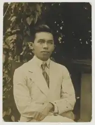 His father was Haji Muhammad Rasad Caniago, an agricultural employee, and his mother was Rangkayo Sinah Simabua, a daughter of a respected figure in the village. As a child, Tan Malaka lived with his parents in Suliki, and studied religious knowledge and trained in the pencak silat martial arts.[7] In 1908, Tan Malaka attended the Kweekschool, a state teacher's school, at Fort de Kock.[8] At the Kweekschool, Tan Malaka studied the Dutch language and became a skilled football player.[7][9] According to his teacher, G. H. Horensma, although Malaka was sometimes disobedient, he was an excellent student.[7] He graduated in 1913, and returned to his village. His return would be ceremonialized by the conferment on him of a high adat title of datuk and the offer of a fiancée. However, he only accepted the title.[9] He succeeded in getting money from the village to continue his education abroad, and he sailed for Rotterdam that same year.[2]