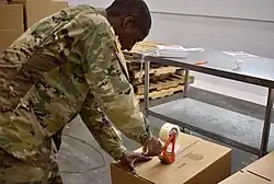 A handheld dispenser is a variation of handheld tape dispenser used to apply tape to close boxes, etc. Some refer to it as a "tape gun".