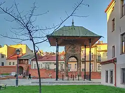 Tarnów is known for its traditional Polish architecture, which was influenced by foreign cultures and foreigners that once lived in the area, most notably Jews, Germans and Austrians.[4] The Old Town, featuring 16th century tenements, houses and defensive walls, has been preserved. Tarnów is also the warmest city of Poland, with the highest long-term mean annual temperature in the whole country.[5]