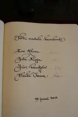 - ^ "Tartu tänas auväärseid tartlasi". Uudised (in Estonian). 2014-02-24. Retrieved 2023-02-01.