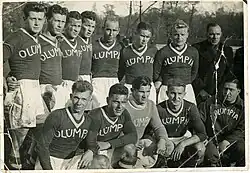 Tartu Olümpia rose back to the top flight for the 1938/39 season and finished in sixth place, only a point away from the third placed VS Sport. Backed by Tartu department store owner Karl Jänes, the club strengthened their team with several Estonian internationals for the following year.[1] Olümpia began the 1939–40 season with a 0–3 loss to Sport, but went on to win all of the following games and were crowned the Estonian champions after defeating Kalev 3–1 in the final matchday, with captain Richard Kuremaa scoring 13 goals throughout the season.[4][5] In the process, Tartu Olümpia became the first club outside of capital city Tallinn to lift the Estonian Football Championship title, and have remained to be the only non-Tallinn club to do so until present day.[6]