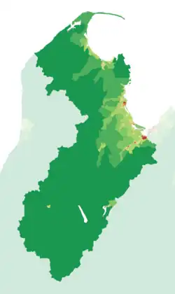 Tasman District covers 9,615.58 km2 (3,712.60 sq mi)[1] and had an estimated population of 59,800 as of June 2024,[2], representing 1.1% of New Zealand's population. The population density was 6.2 people per km2.