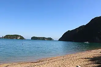 Tata Islands are a pair of small uninhabited islands off the north coast of New Zealand's South Island. They are located some 20 kilometres (12 mi) to the northwest of Tākaka in the southeast of Golden Bay close to Abel Tasman Point, and are contained within Abel Tasman National Park.[1] The small settlement of Tata Beach lies on the South Island mainland one kilometre to the south of the islands.