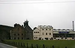 Nothing now remains of the station, signal box or siding however the entrance and car park area is still present and the line remains open.[7] The distillery branch was operated by a signal box located near the road overbridge on its western side with two short sidings and associated points lying parallel to the main line. The single track branch to the distillery had sidings that supplied the loading dock area.[3]
