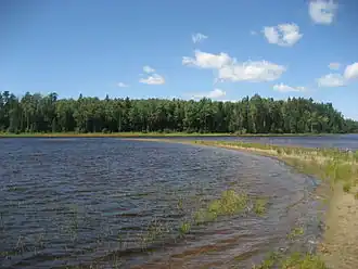 This large lake has 239.4 kilometres (148.8 mi) of banks including many sandy beaches, including the beach of Pointe-fine located at the end of a peninsula that just into the centre of the lake. Sandy shores of "Baie du milieu" (bay of the Middle), and "des Embranchements" and "du Poste" attract wilderness camping and swimming fans.[2]