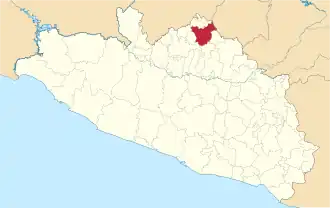 Taxco de Alarcón is a municipality in the Mexican state of Guerrero. It covers an area of 650.7 km2 and includes 121 communities. The municipal seat lies at Taxco de Alarcón. The population was 105,586 at the time of the 2020 census.[1]