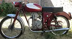 This model appeared on the market with a different gas tank and painted red and white. Finally, in 1964, toward the end of production, the camshaft that had been driven by gears was changed to a chain drive camshaft.