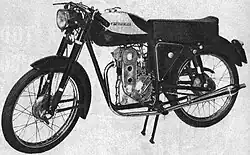 In 1955, Juan Raffaldi designed the engine. It was a four-stroke engine of 50 cc displacement (single overhead camshaft- SOHC). This design was a little unusual for its time; up until then, it had been used primarily in racing motorcycles. Furthermore, it had no oil pump and it was made totally out of aluminum.