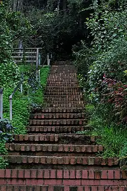 The Filbert Street Steps, consisting of about 400 wooden steps that descend the east slope of Telegraph Hill connect two segments of Filbert Street.[15] The steps pass the gardens of houses on the hill, and run through the Grace Marchant Garden, which resident Grace Marchant started in 1949 and is now tended to and paid for by the residents of the "street."[16][17] From there, the steps run down to an eastern stub of Filbert Street and the walkway through the plaza to The Embarcadero. Many houses in this residential neighborhood are accessible only from the steps. As on paved streets, several fire hydrants and a solitary parking meter are located along the steps.