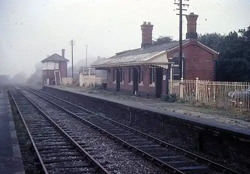 On 4 September 1866 a railway line was completed to link south Pembrokeshire with the main rail line at Whitland. In Templeton a high limestone bridge was built to span Tanner's Lane and a small station was built in 1867. This was mainly used by the adjacent brickworks until World War I when a new platform was built. There were also extensive sidings that were used twice for overnight stops for the Royal Train. The station was closed on the 16 June 1965 as part of the Beeching cuts and has since been removed.[3]