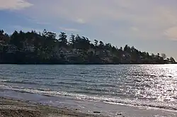 Ten Mile Point is a neighbourhood in the District of Saanich in Victoria, British Columbia, and is the most easterly point on Vancouver Island. Ten Mile Point was so named because it was ten nautical miles (18.5 km (11.5 mi)) from what was at the time the headquarters of the Pacific Station of the Royal Navy (now CFB Esquimalt). Ten Mile Point is a wooded peninsula that forms one side of Cadboro Bay, the home of the Royal Victoria Yacht Club and the mythical Cadborosaurus sea monster. Cadboro Point is located on the east part of this peninsula. Prevost Hill was named after James Charles Prevost, British commissioner in the negotiations to settle the San Juan boundary dispute. Prevost Hill is the highest elevation on Ten Mile Point and is known informally in the neighbourhood as "Minnie Mountain".[1] Prevost Hill is the location for a subdivision within Ten Mile Point called "Wedgewood Point" or "Wedgewood Estates". A small wooded island, "Flower Island", almost touches the southern shore of Ten Mile Point. Ten Mile Point has many secluded beaches and coves.