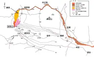 The most seriously damaged area by Tenmei eruption was the Kanbara (now Tsumagoi, Gunma Prefecture). Kanbara was destroyed by avalanche by eruption and 477 people were killed.[29][30] Because of it, Kanbara is also called "Japan's Pompeii".[31]