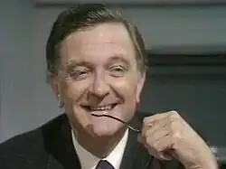 Educated at Christ's Hospital, the University of St Andrews and the Royal Academy of Dramatic Art,[2] Evans first became well known for his long-running roles as Leading Seaman "Taffy" Goldstein and Admiral Ffont-Bittocks (and other occasional characters) in The Navy Lark, a popular BBC radio comedy series (1959–1977), which starred Dennis Price, Leslie Phillips, Jon Pertwee and later Stephen Murray, with Richard Caldicot, Michael Bates, Ronnie Barker and Heather Chasen.[4] Pertwee became one of Evans's best friends – he encouraged Pertwee to audition for Doctor Who, although both were unaware that Pertwee was already being considered for the role; Pertwee subsequently helped Evans to get a role in the Doctor Who story "Carnival of Monsters".[5]
