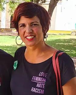 María Teresa Rodríguez-Rubio Vázquez (Spanish pronunciation: [teˈɾesa roˈðɾiɣeθ]; born 18 September 1981) is a Spanish politician. Active in United Left in her youth within the platform Espacio Alternativo, in 2008 the organization split from IU. She then participated in the creation of Izquierda Anticapitalista, later renamed as Anticapitalistas. She was a Member of the European Parliament representing Podemos from 2014 to 2015, and was the party's presidential candidate for the 2015 and 2018 Andalusian parliamentary elections. She left Podemos in 2020 and founded the Adelante Andalucía party, being elected to the Parliament of Andalusia in 2022 and leaving her seat at the end of the year.