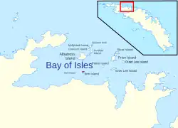 Tern Island in the south part of the Bay of Isles, South Georgia (54°3′S 37°20′W / 54.050°S 37.333°W) is a small, tussock-covered island lying 1.6 km (1 mile) south of Albatross Island and 10 km (6 miles) east of Dot Island.