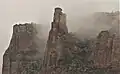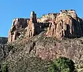 Terra Tower is a 5,790-foot-elevation (1,760-meter) sandstone pillar located in Colorado National Monument, in Mesa County of western Colorado, United States.[3] This 350-foot-high tower is situated on the Redlands escarpment, approximately seven miles west of the community of Grand Junction. Topographic relief is significant as it rises 1,000 feet (300 meters) above the Tiara Rado Golf Course in approximately one-half mile. The first ascent of the summit was made in 1979 by Harvey Carter and Tom Merrill via the class 5.11 route, Way Bazaar.