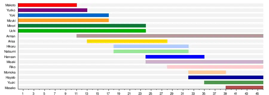 01 Makoto Hasegawa 長谷川慎 Makocchan university student/baseball player (1993-11-21)November 21, 1993 22 01–11 11