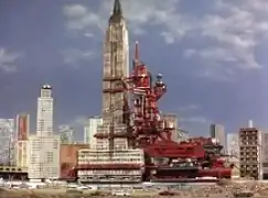 ![]() The episode features an attempt to relocate the Empire State Building using a giant cradle. The scale model of the building has drawn a mixed response for its craftsmanship.[1][2] One commentator has called the atomic‑powered nature of the cradle an example of the series' "preoccupation" with nuclear technology.[3] | |