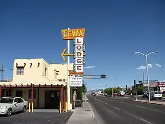 The Tewa Lodge is a historic motel on Central Avenue (former U.S. Route 66) in Albuquerque, New Mexico. It is notable as one of the best-preserved Route 66 era motels remaining in the city,[3] and one of the few still operating as a motel.[4] It was built in 1946 and was added to the New Mexico State Register of Cultural Properties and the National Register of Historic Places in 1998.[2]