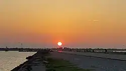 The Texas City Dike is a levee located in Texas City, Texas, United States that projects nearly 5 miles (8.0 km) south-east into the mouth of Galveston Bay.[1] It is flanked by the north-eastern tip of Galveston Island and the south-western tip of the Bolivar Peninsula. The dike, one of the area's most beloved and enduring landmarks, was originally designed to reduce the impact of sediment accumulation along the lower Bay.[2]