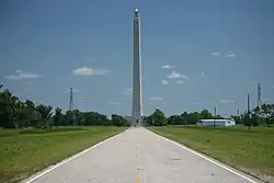 PR 1836 begins at an intersection with Independence Parkway near several oil refineries in Houston, Harris County. From here, the park road heads northeast along two-lane undivided Juan N. Seguin Boulevard onto the grounds of San Jacinto Battleground State Historic Site, passing through a park gate. The PR 1836 designation extends along all the roads on the park grounds.[2][3] Marker Drive leads northwest from Juan N. Seguin Boulevard and serves the park headquarters and the site of the USS Texas. Juan N. Seguin Boulevard continues northeast and loops around the San Jacinto Monument as Monument Circle. Another branch of PR 1836 heads southeast from the intersection of Juan N. Seguin Boulevard and Marker Drive and turns north before reaching a dead end adjacent to the Marsh and Wetlands Habitat. Another section of the park road runs from Monument Circle southeast alongside the Marsh and Wetlands Habitat before turning southwest to intersect the easterly branch of PR 1836.[3][4]