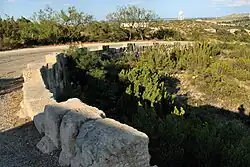 The Civilian Conservation Corps began work on Park Road 8 during the construction of Big Spring State Park between 1934 and 1935. Retaining walls on the descending switchbacks were built with locally quarried limestone blocks, some of which weighed up to two tons.[3] On September 22, 1936, the state highway commission initiated an investigation at the request of the state's parks board into the incorporation of certain park roads as part of the state highway system after which the highway commission would assume maintenance of these roads. The highway commission accepted the park road in Big Spring State Park and seven other parks as the original park roads in the state system on June 22, 1937.[2]