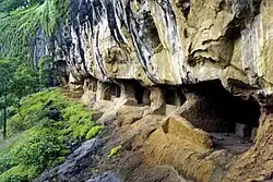 These caves belong to first century B.C.[1] It has two chaityas, two stupas and the rest are viharas.[2] These caves are some of the most ancient rock-cut caves not only in Maharashtra but in all India and were located at a complex site of the ancient trade route of Chaul. The earliest caves were probably excavated between 70 and 50 BC, according to paleographic evidence.[2]