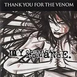 "Thank You for the Venom" a song from My Chemical Romance's second studio album, Three Cheers for Sweet Revenge. It was released as an airplay single in Europe. It is also My Chemical Romance's fifth single. The song peaked at number 71 in the UK. The song was released in limited edition red vinyl and has long been out of print. It was featured in Need for Speed: Underground Rivals for PSP.