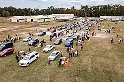 It is common during this time for increased donations and charity drives to support providing a Thanksgiving meal to those in need, such as unhoused people and shelters.[102] Nonprofits such as the Salvation Army run drives to collect basic Thanksgiving dinner food items such as canned foods, stuffing mix, butter, eggs, and turkey or chicken.[102][103] Some food banks will distribute free turkeys to help people trying to assemble a Thanksgiving dinner;[104] for example, San Diego Food Bank gave out 14,000 turkeys in 2024. Also, some may volunteer to help others have Thanksgiving dinner on that day.[105]