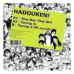 A collision of grimey beats, razor-sharp lyrical dissection of 2007 nightlife and a whole dollop of flouro-pop sensibility, Hadouken! exploded into 2007 with the release of their Radio One championed 12" 'That Boy That Girl'. Confusing some, tickling most, their kaleidoscopic approach modern pop music is exhilarating. The song was released as a 1000 record limited pressing, with 500 of these being coloured in by the band themselves, which is now somewhat of a collectors item.[1]