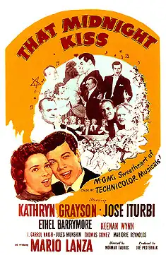 That Midnight Kiss is a 1949 Technicolor American musical romance film also starring Mario Lanza (in his first leading role) and Kathryn Grayson. Among the supporting cast were Ethel Barrymore, conductor/pianist Jose Iturbi (playing himself), Keenan Wynn, J. Carrol Naish, and Jules Munshin. The commercially popular film was directed by Norman Taurog, who the following year would again direct Lanza and Grayson in the even more successful The Toast of New Orleans.