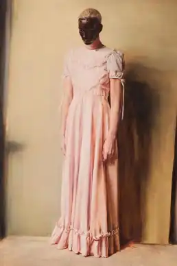 The Angel is a 2013 painting by the Belgian Michaël Borremans. Painted in oil on a three-metre-high canvas, it shows a blonde woman in a light pink dress and black face paint. It was made in 2013 after Borremans found the dress in a carnival store and had the fashion model Hannelore Knuts pose with it in his studio. Critics have described the painting as enigmatic, androgynous and eye-catching. It was first exhibited in Antwerp in 2013 and was the main publicity image for a Borremans exhibition held in Brussels, Tel Aviv and Dallas in 2014–2015.