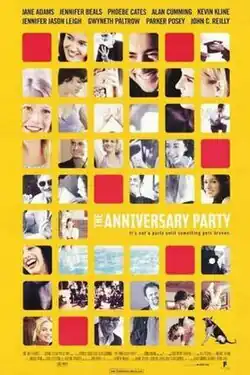 The Anniversary Party is a 2001 American comedy drama film written, directed, produced by, and starring Jennifer Jason Leigh and Alan Cumming, both making their respective feature directorial debuts. It is Phoebe Cates's final film appearance before her retirement.