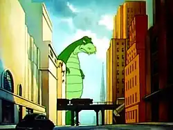 The Arctic Giant is the fourth of seventeen animated Technicolor short films based upon the DC Comics character of Superman, created by Jerry Siegel & Joe Shuster. This animated short was created by Fleischer Studios. The story runs nine minutes and covers Superman's adventures in defeating a giant defrosted dinosaur that terrorizes the city. It was released on February 27, 1942.[1] The short depicts a Godzilla-esque scenario while predating the 1954 film by 12 years.[2][3]