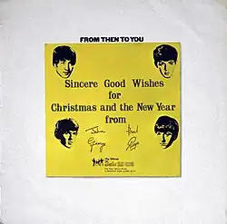 In December 1970, in the wake of the band's break-up, the UK fan-club sent out a compilation LP of all seven of the Beatles' Christmas recordings, entitled From Then to You. The master tapes having been mislaid, the LP was mastered from copies of the original flexi discs.[29] In the US, the seven messages were issued as The Beatles Christmas Album sent out by the fan-club around springtime 1971.[30] It was the first time the 1964 and 1965 messages had been made available in the US.[30] With no new recording, the LP served to remind that the Beatles were no more, but had the advantage of durability over the original flexi discs.