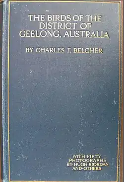 The Birds of the District of Geelong, Australia is a book published in 1914 by W.J. Griffiths in Geelong, Victoria, Australia. Authored by Charles Frederic Belcher, it was published in octavo format (225 x 144 mm), containing 414 pages bound in navy blue buckram. It is illustrated with numerous black-and-white photographic plates. It contains a systematic list of 244 bird species known to occur within a radius of 56 km (35 mi) from the city of Geelong, south-west of Melbourne on the western side of Port Phillip Bay, followed by largely personal reminiscences on the birdlife. The author says in his Preface: