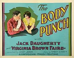 The Body Punch is a 1929 American silent comedy film directed by Leigh Jason and written by Harry O. Hoyt, Clarence Marks, and Gardner Bradford. The film stars Jack Dougherty, Virginia Brown Faire, George Kotsonaros, Wilbur Mack, Monte Montague, and Arthur Millett. The film was released on July 14, 1929, by Universal Pictures.[1][2][3]